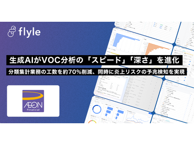 株式会社フライル(本社:東京都港区、代表取締役CEO 財部優一、以下Flyle)は、イオンフィナンシャルサービス株式会社(本社:東京都千代田区、代表取締役社長 深山 友晴)において、VOC(お客さまの声)分析基盤として、AIインサイト分析プラットフォーム「Flyle」が採用・導入されたことをお知らせします。