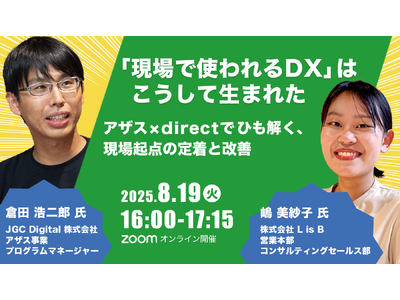 株式会社L is B(エルイズビー 本社:東京都千代田区、代表取締役社長CEO:横井 太輔、以下L is B)は、建設現場の安全文化向上を支援する「アザス」を提供するJGC Digital株式会社(本社:神奈川県横浜市、代表取締役社長兼CIO:長谷川 順一、以下JGC Digital)と共催で、「現場で使われるDX」をテーマとした対談形式のオンラインセミナーを開催いたします。