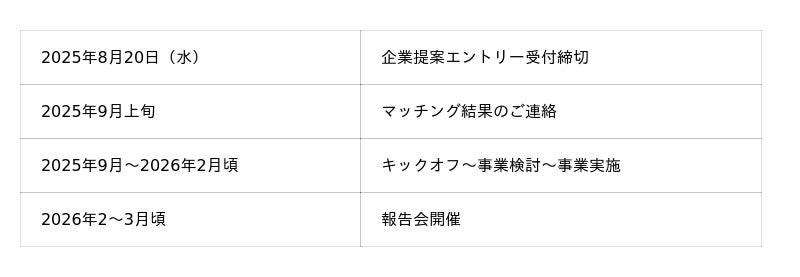 本プログラムでは、「市町村・地元企業の課題の深堀」から「企業とのマッチング」、「マッチング後のプロジェクト組成」、「事業化に向けた伴走支援」までをトータルでサポートし、年度内の小さな事業実施を目指します。
