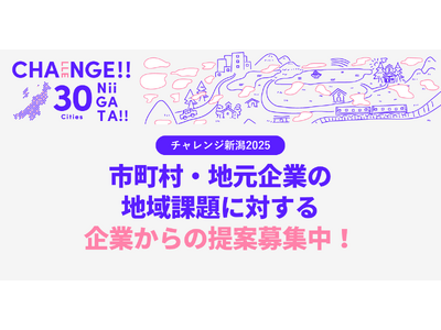 新潟県主催「令和7年度新潟県地域課題解決を核とした新たな企業誘致推進事業」として、県内の市町村と地元企業が抱える課題解決に企業と共創で取り組む「チャレンジ新潟2025」のマッチング提案を募集中。