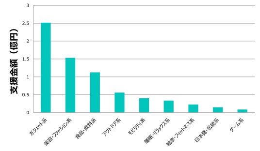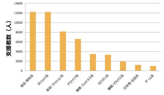 興味深いのは、支援金額では食品・飲料系が3位にとどまっていた一方で、