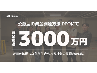 個人の「やりたい(Will)」を発見し、社会で実現までを一気通貫で支援する株式会社Lirem(読み方:リレム、本社:愛知県豊橋市、代表取締役:籔内 龍介)は、企業が証券会社などの金融仲介業者を介さずに直接、投資家に対して有価証券を募集する資金調達手法「DPO(Direct Public Offering)*1」により3,000万円の資金調達を完了いたしました。この手法の採用により、当社の理念に共感するファンや顧客といった「応援投資家」から直接資金を募ることが可能となります。調達資金は、今後の事業の中核を担う人材の採用とプロダクト開発に充当します。