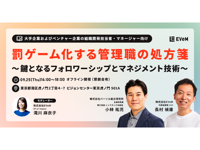 マネージャーイネーブルメントサービスを提供する株式会社EVeM(本社:東京都新宿区、代表取締役:長村 禎庸)は、株式会社パーソル総合研究所 主席研究員 小林 祐児氏をゲストに迎え、管理職の構造的課題に向き合うイベント「罰ゲーム化する管理職の処方箋 ~鍵となるフォロワーシップとマネジメント技術~」を2025年9月25日(木)に開催いたします。