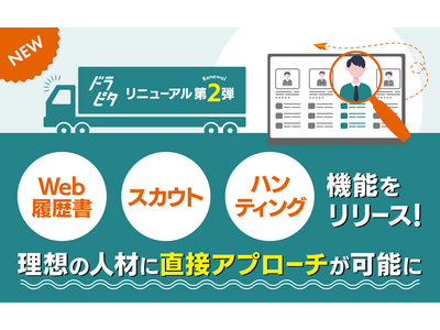 株式会社じげん(本社:東京都港区、代表取締役 社長執行役員CEO:平尾丈、東証プライム:3679、以下じげん)のグループ会社である株式会社オーサムエージェント(本社:愛知県名古屋市東区泉、代表取締役:代田晴久、以下オーサムエージェント)が運営する、運送・物流業に特化した専門求人サイト『ドラピタ』(https://www.dorapita.com/)は、2025年7月より、新たに「Web履歴書」「スカウト」「ハンティング」機能をリリースいたしました。
