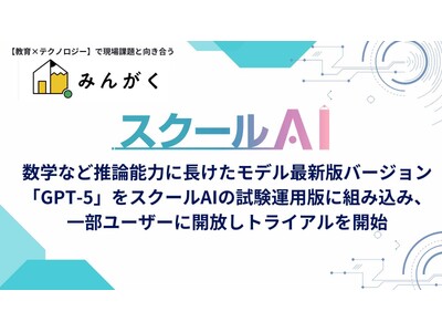 みんがく、開発・運営を手掛けるスクールAIに、米OpenAIが発表した新たなAIモデル「GPT-5」を一部ユーザーに開放しトライアルを開始