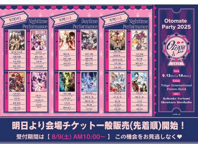 アイディアファクトリー株式会社(代表取締役社長:佐藤 嘉晃/所在地:東京都豊島区)の女性向けゲームブランド「オトメイト」は、2025年9月13日(土)・14日(日)に東京国際フォームラム ホールAにて開催する「オトメイトパーティー2025」の会場チケット一般販売が明日8月9日(土)より開始することをお知らせいたします。