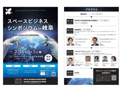 「GIFU スペースビジネス協議会」の立ち上げを記念して、宇宙産業の最新動向を学びながら、成長が著しい宇宙市場に、地域の中小企業の強みを活かした参入のきっかけを探るためシンポジウムを下記のごとく開催します。