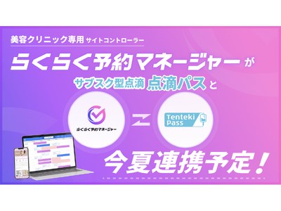 Medvice(メドビス)株式会社(東京都台東区、代表取締役:瀬戸 恵介)が開発・提供する、サブスク型点滴「点滴パス」は、株式会社シアン(本社:東京都品川区、代表取締役:籔本 崇)が開発・提供する美容クリニック向けサイトコントローラー「らくらく予約マネージャーfor美容クリニック」と連携いたします。