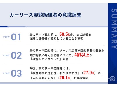 - 01|車のリース契約前に、50.5%が、支払総額を詳細に計算せず契約していることが判明