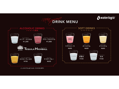 メキシコ政府認定の資格を持つバーテンダーの伊藤裕香氏が考案した、「Classe」のきめ細やかな炭酸水が熟成テキーラの高級感ある香りを引き立てる、テキーラハイボールやオリジナルのノンアルコールカクテル(モクテル)を提供します。