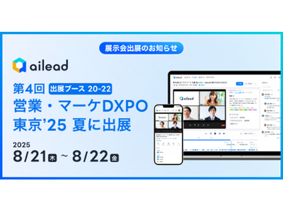 株式会社ailead(本社:東京都港区、代表取締役:杉山大幹)が提供する商談・面談解析クラウド「ailead(エーアイリード)」は、2025年8月21日(木)・22日(金)に東京ビッグサイトで開催される「第4回 営業・マーケDXPO 東京’25 夏」に出展いたします。