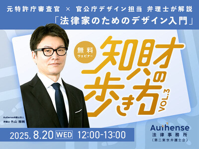 法の解決と、人の気持ちの解決、ともに大切にしていくAuthense法律事務所より、当事務所のグループ法人であるAuthense弁理士法人が講師を務めるウェビナー、「知財の歩き方」のVol.3を開催することをお知らせします。