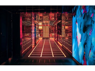 ライブキッチンとダイニングをつなぐ通路には、「LEDアートウォール」と呼ばれる映像演出を導入。世界的なショーを手がけるクリエイティブチームによって、新宿の街並みや錦鯉をモチーフにした映像が時間帯に応じて変化し、音楽と連動した光の演出とともに、ゲストの移動をドラマチックに彩ります。