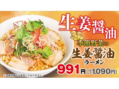 「喜多方ラーメン坂内」をはじめ国内外で多様なジャンルの飲食店事業を手掛ける株式会社麺食(本社: 東京都品川区、代表取締役社長:中原 誠) は、「喜多方ラーメン坂内」にて、季節の限定商品『季節野菜の生姜醤油ラーメン』を2025年8月19日(火)から10月6日(月)まで販売いたします。