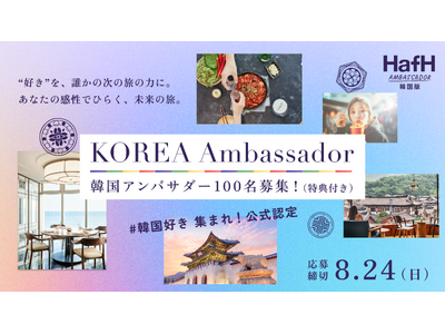 株式会社KabuK Style(本社:東京都中央区、代表取締役:砂田憲治、以下「KabuK Style」)が提供するつみたて旅行サービス「HafH(ハフ)」は、本日「HafHアンバサダー 韓国プロジェクトメンバー(以下、「韓国アンバサダー」)」最大100名の募集を開始しました。