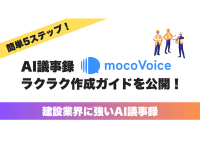 オールインワンAI音声認識「mocoVoice」の使い方を5つの簡単なステップで解説する「使い方ガイド動画」を公開したことをお知らせいたします。本動画を通じて、PCが使えないオフライン環境や、専門用語が飛び交う会議など、建設現場の多様なシーンにおけるmocoVoiceの具体的な活用方法をご理解いただけます。議事録作成や報告書業務の劇的な効率化を実現し、建設業界のDX推進に貢献します。