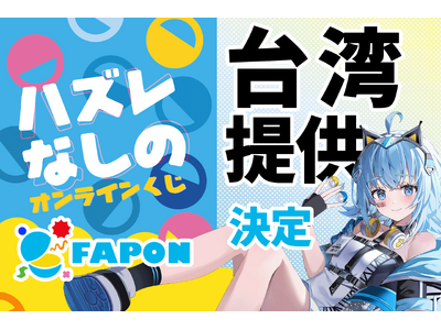 VTuber事務所として初となる自社オンラインくじ『FAPON』は、業界では数少ない海外展開も行うオンラインくじとして台湾提供を決定し、台湾法人である『白猫奇想』との業務提携をお知らせいたします。