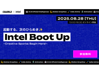 株式会社ボーンデジタル(本社:東京都千代田区、CEO:新 和也、URL:https://www.borndigital.co.jp)が運営する、CG・映像制作の専門メディア「CGWORLD」は、インテル株式会社の協賛のもと、2025年8月28日(木)にオンラインイベント「Intel Boot Up -Creative Sparks Begin Here!-」を開催いたします。