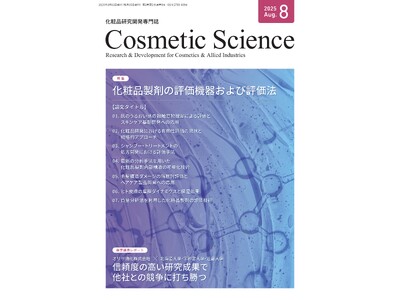 最新の研究成果をより早く、より分かりやすく!第一線で活躍する研究者を執筆陣に迎え、8月号を発刊(8月15日)。今回の特集は「化粧品製剤の評価機器および評価法」です。