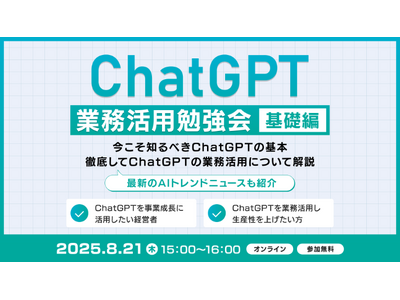 ChatGPTの基礎から、具体的なビジネス活用事例までを分かりやすく解説する勉強会を開催します。すでに400人以上が受講し、その効果を実感しています。ChatGPTをビジネスのインフラとして活用し、業務効率化を図りたい方は、ぜひご参加ください。