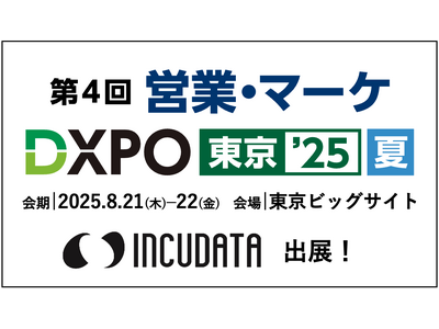 インキュデータ株式会社(本社:東京都港区、代表取締役社長 兼 CEO:町田 紘一、以下「インキュデータ」)は、2025年8月21日(木)~22日(金)に東京ビッグサイトにて開催される「第4回 営業・マーケDXPO東京’25【夏】」に出展します。