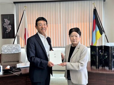 公益財団法人 オイスカ 理事長 中野悦子氏(右)と弊社取締役常務執行役員 前田昭夫(左)