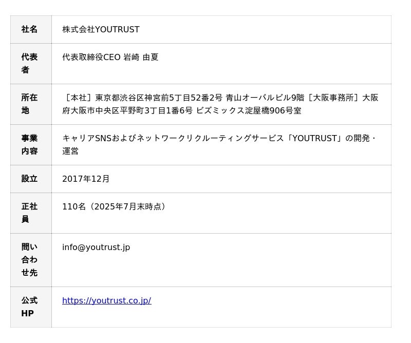 ▶ 採用企業様向けページ:https://lp.youtrust.jp/recruiter