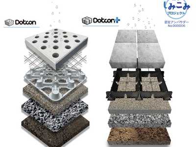 Dotconは透水・貯留・浸透の3機能を一体化したコンクリートです。