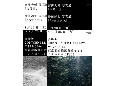 この度、アートギャラリー「COPYCENTER GALLERY」は、2025年8月20日(水)から8月26日(火)まで、1Fにて富澤大輔による写真展「火曜日」、B1Fにて砂田紗彩による写真展「Anesthesia」を同時開催いたします。