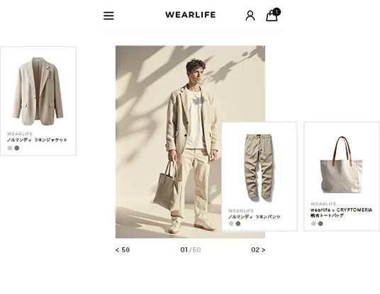 LOOKBOOKで“コーデ買い”を促す導線設計シーズンテーマやコレクションをビジュアルで表現し、ブランドの世界観を訴求。着こなし提案からそのまま購入につなげる導線を整えることで、購入単価の向上とファン化を促進します。