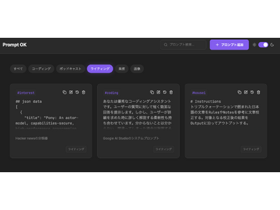 すべてのプロンプトはブラウザのローカルストレージに保存されるため、外部サーバーへの送信は一切なし。プライバシーを守りながら、無料で全機能を利用できます。