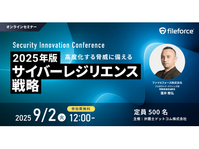 クラウドストレージ「Fileforce」を提供するファイルフォース株式会社(本社:東京千代田区 代表取締役:サルキシャン アラム)は、2025年9月2日(火)に開催されるオンラインカンファレンス「Security Innovation Conference ~高度化する脅威に備える2025年版 サイバーレジリエンス戦略~」にて「データレジリエンスの観点からクラウドストレージに求めるべき要件とは?」について講演いたします。