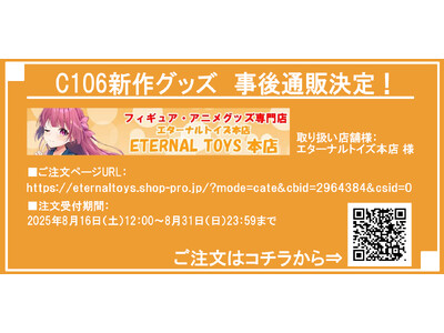 アニメグッズ専門店「エターナルトイズ本店」様では他メーカーのC106発売グッズも事後通販の注文を受け付け中。