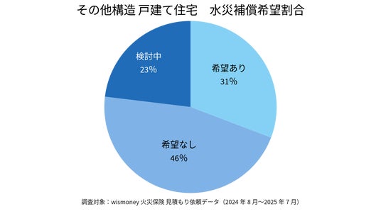 木造住宅は床下浸水や壁内浸水による腐食・カビなど、長期的な被害リスクが大きいとされる構造です。それにもかかわらず補償を希望しない割合が高く、