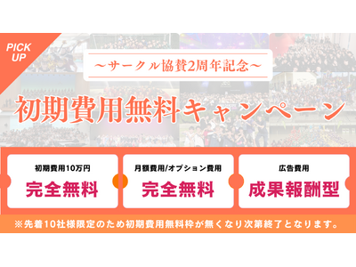1,000以上のサークル/部活/学生団体と企業をマッチングする「サークル協賛」が、先着10社様限定で初期費用無料キャンペーンを実施しました。