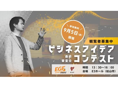 『事業をつくることを誰でもできる』ことをミッションに掲げ、生業作りの経験を共有するチーム・株式会社アドリブワークス(代表取締役:山岡 健人)では、愛媛県が唯一主催するビジネスアイデアコンテスト「EGFアワード2025」の運営を行っています。この度、愛媛の未来を創造するビジネスアイデアコンテスト「EGFアワード2025最終審査会」を、来る2025年9月5日の開催にあたり、発表を見守り応援してくださる観覧者の皆様の募集を開始しました。
