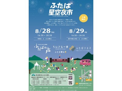 双葉町産業交流センターでは、ふたば星空夜市は8/28音楽ライブ、29日映画上映を開催!グルメやキッチンカーも集結します。星空の下で楽しむ特別な夏の夜へぜひお越しください。