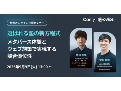 Googleビジネスプロフィール(旧・Googleマイビジネス)、Yahoo!プレイス、Appleマップなどの3大地図媒体、HP、アプリ、SNSなどの店舗集客媒体の一元管理サービス「カンリー店舗集客」の開発・提供を行う株式会社カンリー(所在地:東京都品川区、代表取締役:辰巳 衛,秋山 祐太朗)とバーチャルオフィス「ovice(オヴィス)」の開発・提供を行うoVice株式会社(所在地:石川県七尾市、代表取締役社長CEO:ジョン・セーヒョン)は2025年9月9日(火)13時より学習塾業界向けの共催セミナーをオンライン開催いたします。
