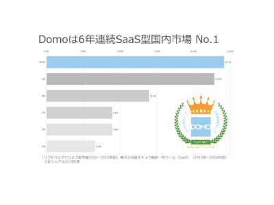 AIを搭載した全社データ活用プラットフォーム「Domo」を提供するドーモ株式会社(本社:東京都千代田区、プレジデント ジャパンカントリーマネージャー:川崎友和、以下ドーモ)は、株式会社富士キメラ総研(本社:東京都中央区、以下富士キメラ総研)が2025年7月に刊行した市場調査レポート「ソフトウェアビジネス新市場 2025年版」において、SaaS型BIツール国内市場シェアNo.1(2024年度)を獲得しました。これにより2019年度から6年連続で、SaaS型BIツールの国内市場シェアNo.1※となりました。