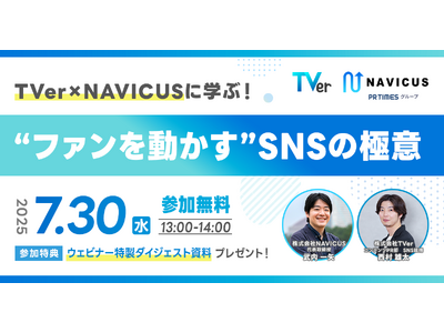 SNSを通じて企業様や地方自治体様のコミュニケーション支援サービスを提供する株式会社NAVICUS(本社:東京都千代田区、代表取締役:武内 一矢、以下:NAVICUS)は、2025年7月30日(水)に無料ウェビナー「TVer×NAVICUSに学ぶ!“ファンを動かす”SNSの極意」を開催しました。