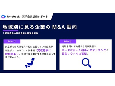 M&A仲介を行う株式会社fundbook(本社:東京都港区、代表取締役: 渡邊和久、読み:ファンドブック、以下「当社」)は、全国主要7都道府県(北海道・宮城県・東京都・愛知県・大阪府・広島県・福岡県)において当社のM&Aマッチングプラットフォーム「fundbook cloud」を利用する買手企業と、M&A担当者(インターネット調査による)を対象に、買収意向に関する調査を実施しました(対象者数:996名)。