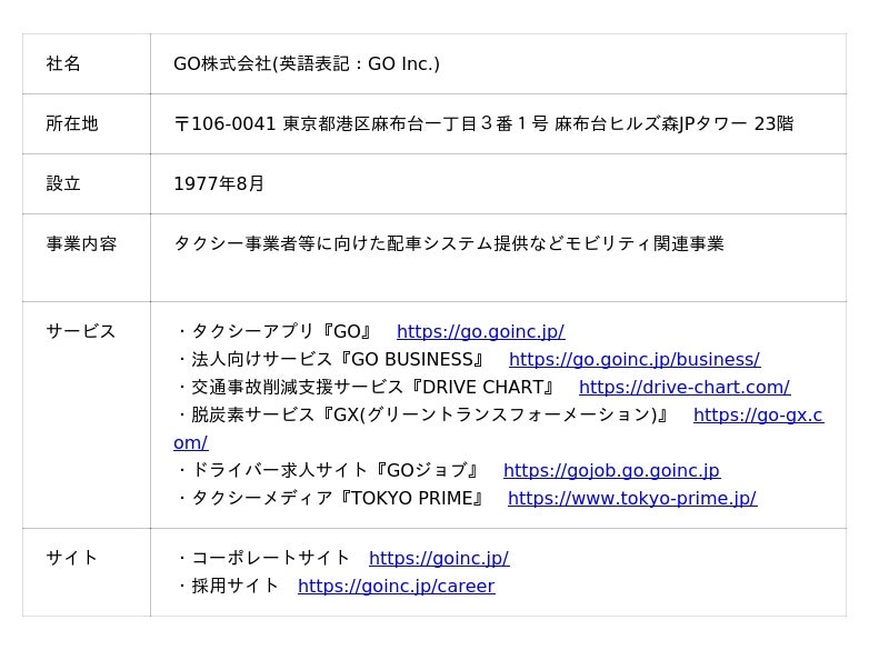 GO株式会社(本社:東京都港区、代表取締役社長:中島 宏)が展開する