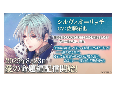 株式会社サイバード(本社:東京都品川区、代表取締役社長 兼 CEO 長嶋 貴之)が手掛ける、累計会員数4,500万人を誇る大人気恋愛ゲーム「イケメンシリーズ」の人気作『イケメン王子 美女と野獣の最後の恋』(以下、『イケメン王子』)は、「シルヴィオ=リッチ (CV: 佐藤 拓也)」(以下、「シルヴィオ=リッチ」)の愛の命題編を、2025年8月23日(土)より配信開始しました。また、愛の命題編配信を記念した様々なイベントを実施します。