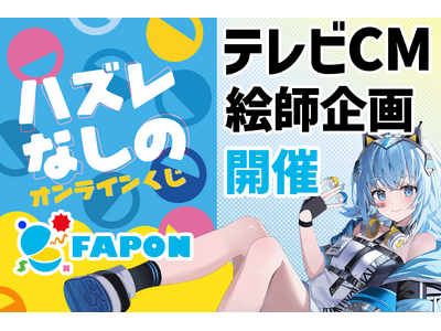 VTuber事務所として初となる自社オンラインくじ『FAPON』は、初の自社広告としてのテレビCMを放映することが決定!そのCM動画へ作品を掲載権を用意した絵師向け企画を展開いたします。