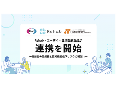 日清医療食品株式会社(本社:東京都、以下 日清医療食品)、エーザイ株式会社 hhceco事業戦略部(本社:東京都、以下 エーザイ)、株式会社Rehab for JAPAN(本社:東京都、以下 Rehab)は、高齢者の低栄養状態や認知機能低下のリスク軽減に向けた連携を開始しました。