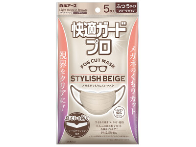 白元アース株式会社(本社:東京都足立区、社長:吉村一人)は、ノーズクッションで息モレを防いでメガネのくもりをカットし、視界をクリアにするマスク「快適ガードプロ プリーツタイプ ふつうサイズ」に新色の『スタイリッシュベージュ 5枚入』を8月25日より新発売いたします。