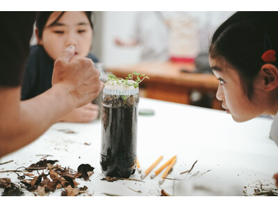 地球の循環や植物の共生を学ぶプログラム。子どもたちはタネをまいたプランターを大切に持ち帰り、成長を楽しみにしていました。