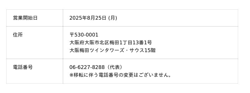 株式会社アイ工務店(本社:大阪府大阪市、代表取締役社長:坂井 達也)は、事業拡大と組織体制の強化を目的とし、2025年8月25日(月)より下記の通り本社オフィスを移転することをお知らせいたします。