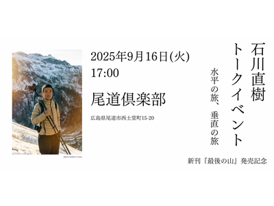 『尾道を目に宿す、宿。』をコンセプトとする、宿泊施設「尾道倶楽部(以下、当ホテル)」は、東京・谷中のさんさき坂カフェと共催で、写真家・石川直樹氏の新刊『最後の山』発売記念トークイベント「水平の旅、垂直の旅」を開催いたします。