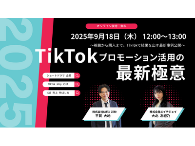 このたび株式会社エイチジェイと株式会社CARTA ZEROは、TikTokを活用したプロモーションにおいて、2025年現在もっとも注目されている最新手法や成功事例を徹底解説するウェビナーを開催いたします。